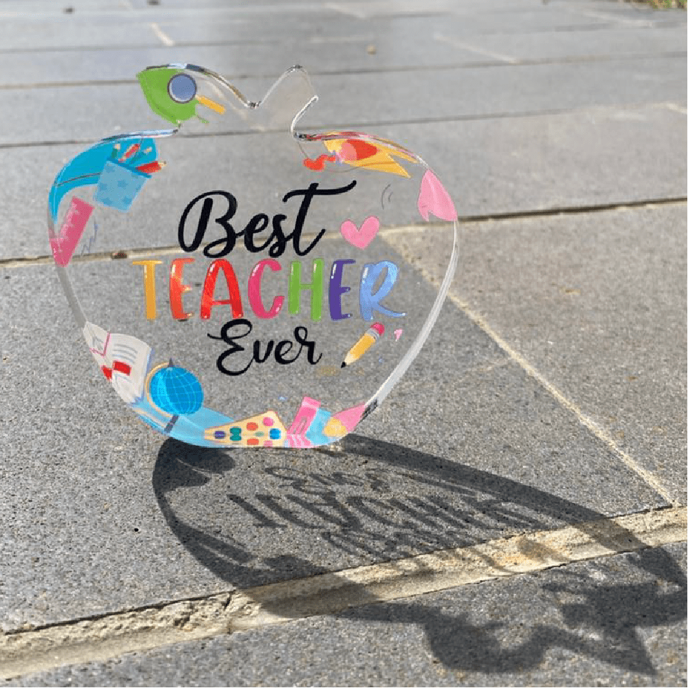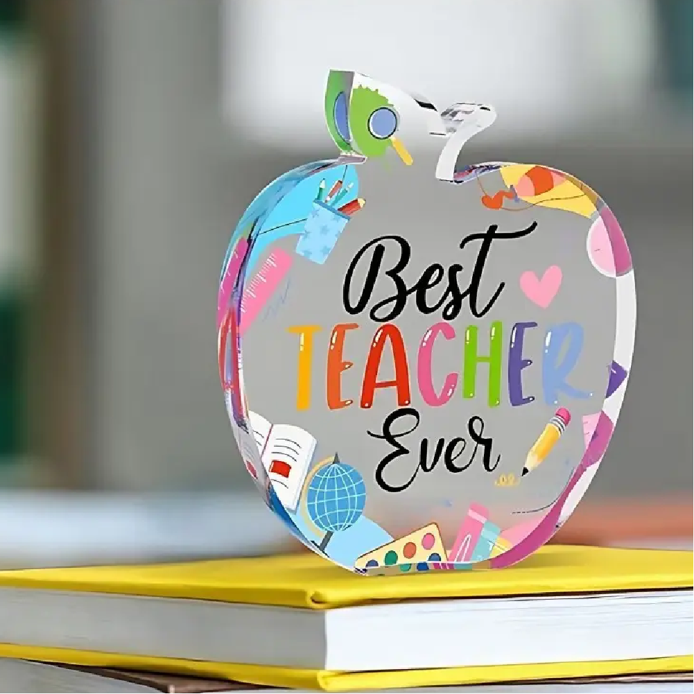 - MATERIAL: Made of clear acrylic and size is about 4”X4”, display it on the table shelf to light up bonus teacher’s room