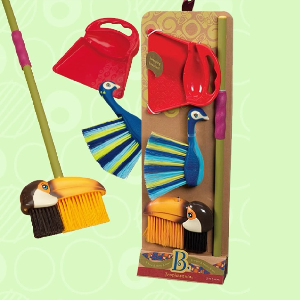 The Tropicleania cleaning set from B. toys comes with beautiful plumage to clean your roomage! This colorful and kid-friendly kit includes 3 cleaning tools with colorful twists – a toucan broom, a peacock hand broom, and a bright red dustpan. The toucan broom’s ergonomic handle feels good in little hands and the peacock hand broom snaps right into the pretty dustpan. Not to mention, these tropical toys come with hours of pretend play opportunities and developmental benefits! The Tropicleania set can teach children about responsibility, boost their confidence, improve their motor skills, and encourage them to B. creative. So, who can get the house beaky clean? You can, Toucan! Recommended for kids 2 years and over.